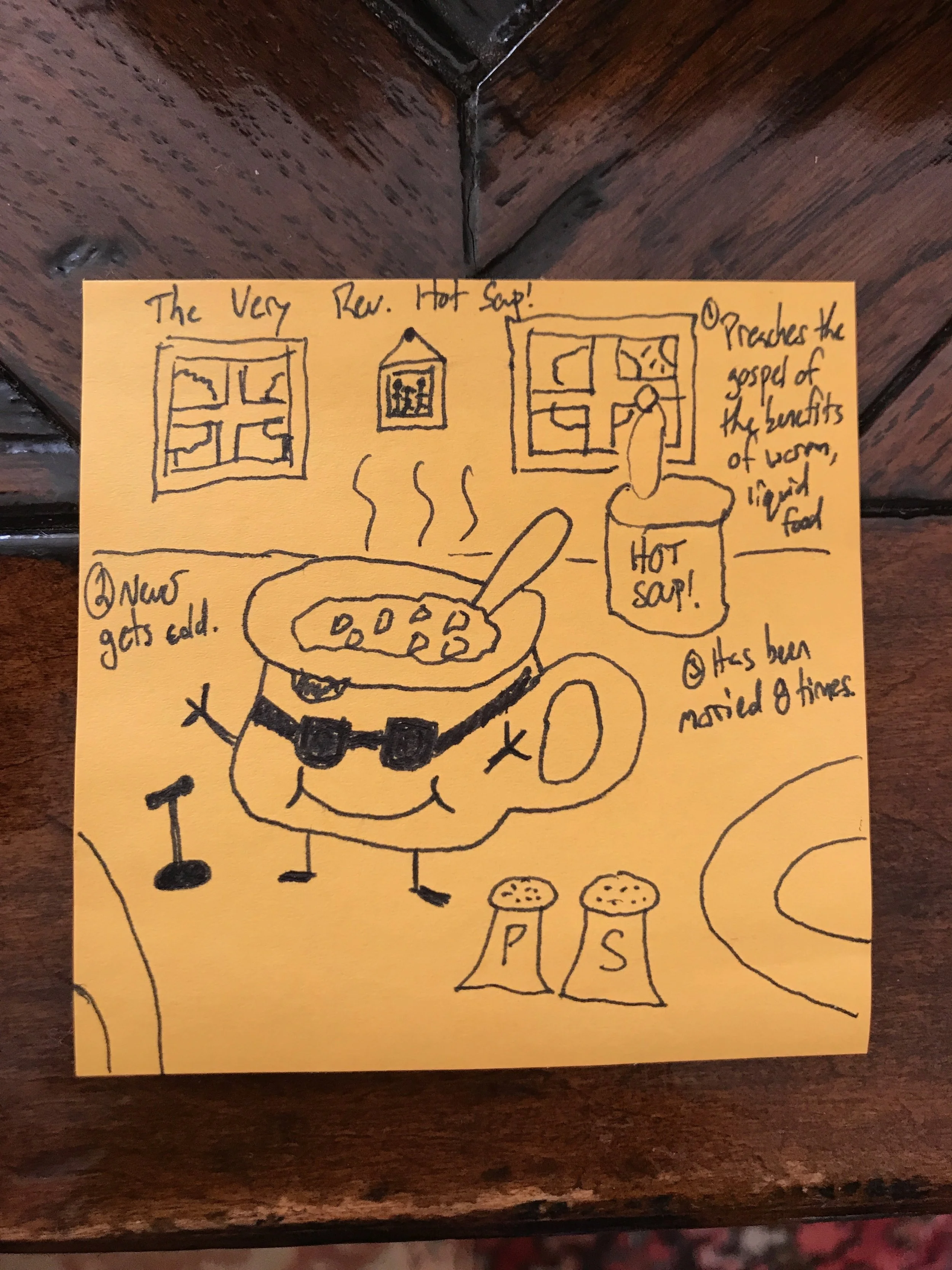 While Leeann cooks pasta around 11, and I sit and sip my soup